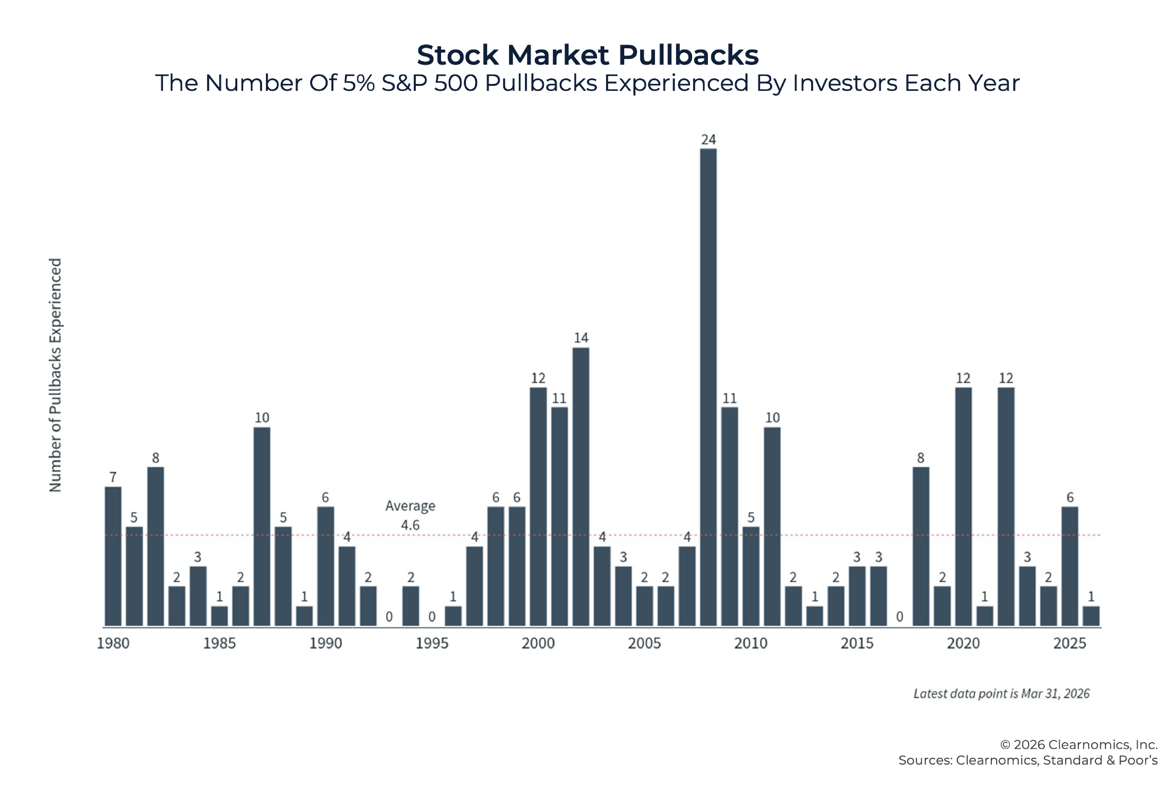 For long-term investors, it is important to remember that pullbacks are a normal and recurring feature of the stock market. Since 1980, the S&P 500 has experienced an average intra-year maximum drawdown of around 15%, yet markets have closed in positive territory in more than two-thirds of years.