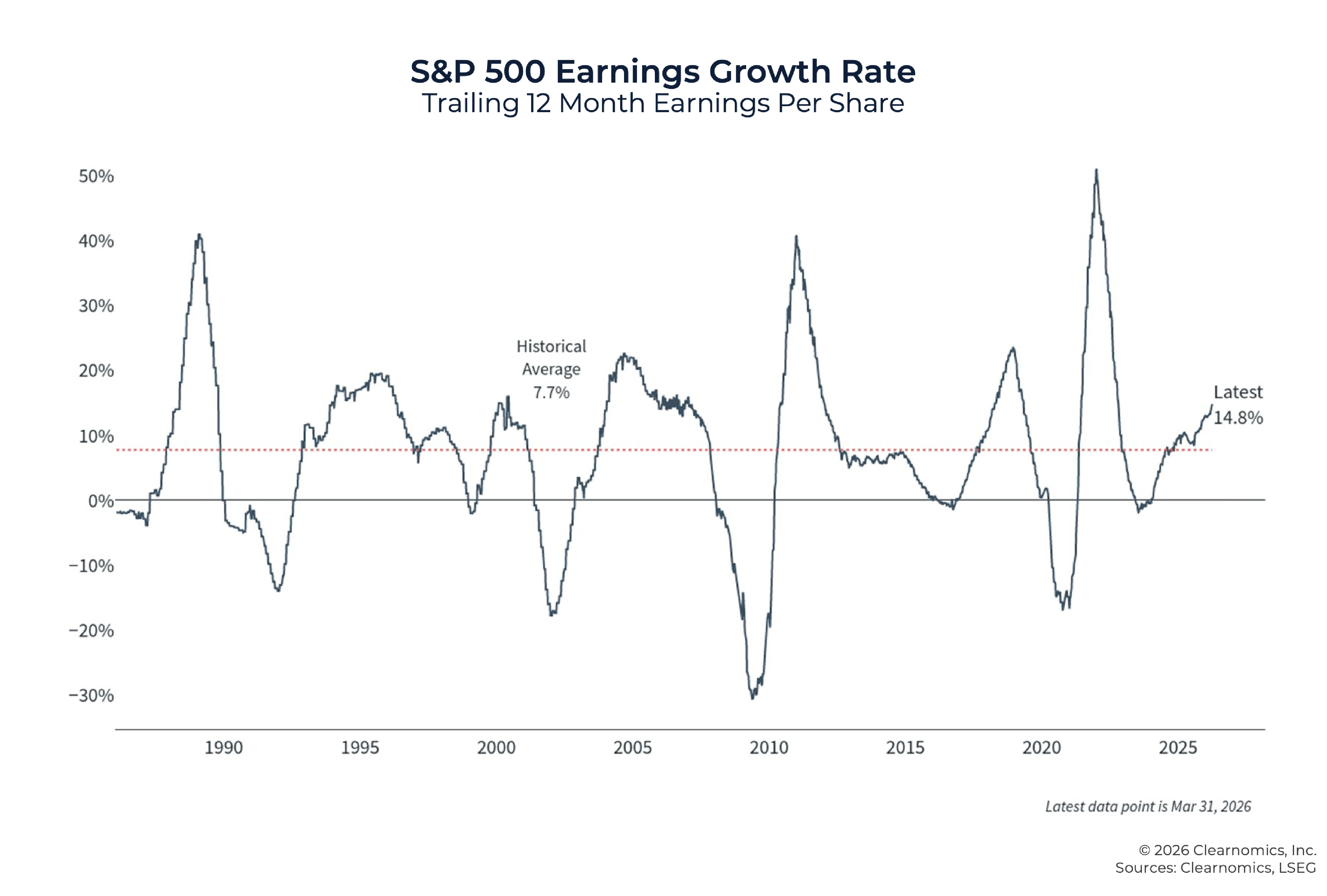 This reinforces why maintaining a long-term perspective matters – earnings grow over time as the economy expands, and staying invested through periods of uncertainty is how investors capture that growth.